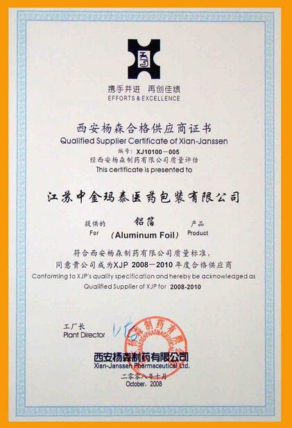 2008年10月23日至24日,2008年度西安楊森制藥有限公司供應(yīng)商“企業(yè)質(zhì)量管理及技術(shù)專題會議”在杭州召開,我公司生產(chǎn)制造部、品質(zhì)管理部負(fù)責(zé)人出席本次會議。本次會議主題為“迎接挑戰(zhàn)共同發(fā)展”,會議主辦方組織開展了質(zhì)量管理、環(huán)境需求以及供應(yīng)商管理等相關(guān)內(nèi)容的互動式培訓(xùn),并評出了公司2008-2010年合格供應(yīng)商,我公司成為西安楊森鋁箔產(chǎn)品的唯一合格供應(yīng)商。