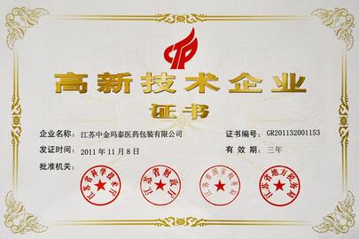 高新技術(shù)企業(yè)的通過,標(biāo)志著公司的科技創(chuàng)新能力再上一個新的臺階,對公司今后的生產(chǎn)、經(jīng)營將起到很大的推動作用。同時也增強(qiáng)了中金瑪泰的市場競爭力,增加企業(yè)的經(jīng)濟(jì)效益,也充分肯定了中金瑪泰作為醫(yī)藥包裝領(lǐng)先企業(yè)所做出的創(chuàng)新價(jià)值。中金瑪泰一直以來堅(jiān)持走科技創(chuàng)新道路,先后有4個項(xiàng)目獲得省科技進(jìn)步獎,“PTP彩箔”、“紙/鋁/塑復(fù)合膜”、“聚合物鋰離子電池芯內(nèi)包裝成型材料”、“非PVC大輸液膜 ”等多個產(chǎn)品成為國家級重點(diǎn)新產(chǎn)品。近三年來,企業(yè)獲得國家發(fā)明專利1項(xiàng)、實(shí)用新型6項(xiàng)。“中金”品牌被評為國家優(yōu)秀包裝品牌,“水性PTP鋁箔”項(xiàng)目獲得國家優(yōu)秀創(chuàng)新獎。2010年高新技術(shù)產(chǎn)品收入達(dá)到2.4億元,占銷售收入77%。科技創(chuàng)新為企業(yè)的發(fā)展做出了巨大的貢獻(xiàn)。