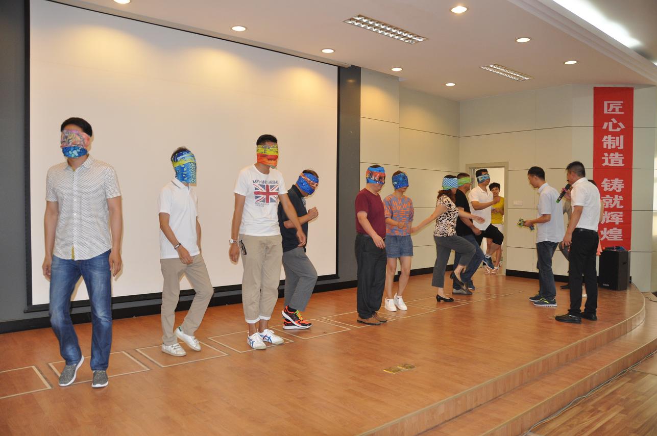 下午進行的一系列活動中,首場進行的參與性極強的猜詞游戲,更是讓現場的氣氛異常活躍,一個個新穎獨特的詞語,激發了員工們豐富的想象力和表演天賦,臺下比劃、臺上猜,幽默搞笑的話語讓場下觀眾忍俊不禁;最考驗員工經驗及水平的還是“獨具匠心”環節,作為有著多年生產經驗的各工序生產主操,現場通過手摸材料判斷其厚度,目測卷徑大小,數袋子以及聞溶劑氣味判斷其名稱等一系列比賽環節的比拼,各生產主操豐富的經驗及準確的判斷讓現場的觀眾為之嘆服。在接下來的兩掌爭霸賽中,參賽選手戴上眼罩,原地轉兩圈,隨著主持人的口令在規定區域甩臂高抬腿踏步走,在激昂的樂曲聲中,有些自以為還在原地踏步的參賽選手,卻早已在不知不覺中,雄糾糾、氣昂昂地走出了老遠,引得場下觀眾笑聲連連。活動過程中穿插的一首首動聽的歌曲也贏得了觀眾的陣陣掌聲。