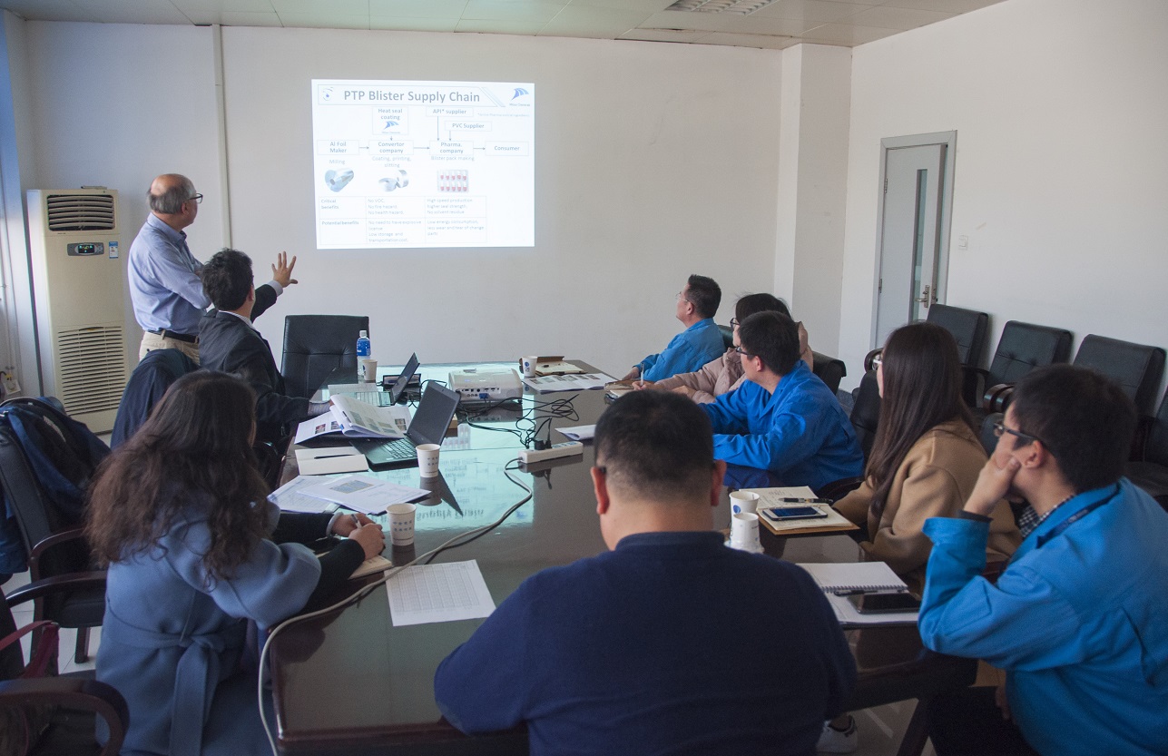 本次交流會上,三井公司的技術人員重點分享了歐美、日本、印度等海外藥包材市場的水性化進展趨勢,以及泡罩包裝領域PVC/PVDC復合硬片的應用現狀及增長趨勢等相關信息。同時他們也對三井公司最新的水性新材料研發進展情況及推廣計劃等內容做了詳細介紹。雙方并就未來合作的模式提出了一些設想,并達成共識。希望以后能繼續保持密切的技術交流,在水性及其他領域開展廣泛的合作,構建戰略合作伙伴關系,為實現雙贏的目標而一起努力。