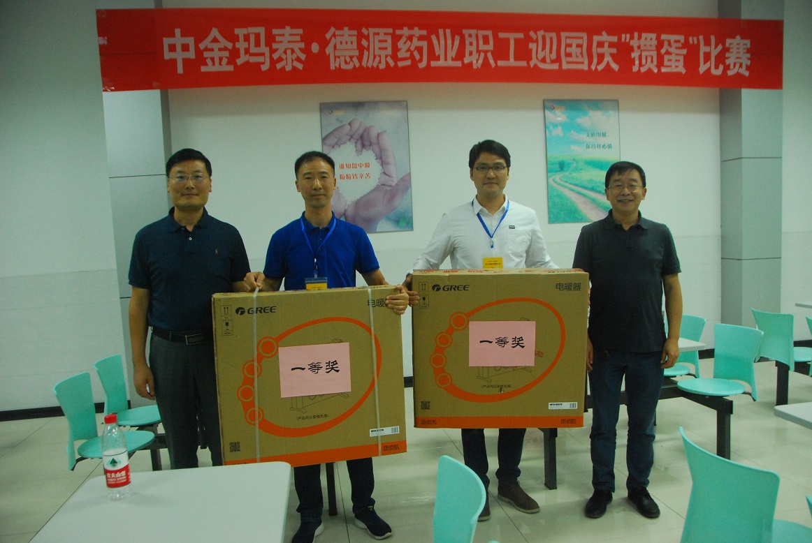 為慶祝中華人民共和國成立69周年,9月29日,中金瑪泰·德源藥業職工迎國慶“摜蛋”比賽在德源藥業舉行。本次活動雙方各選派出8組選手參加了比賽。